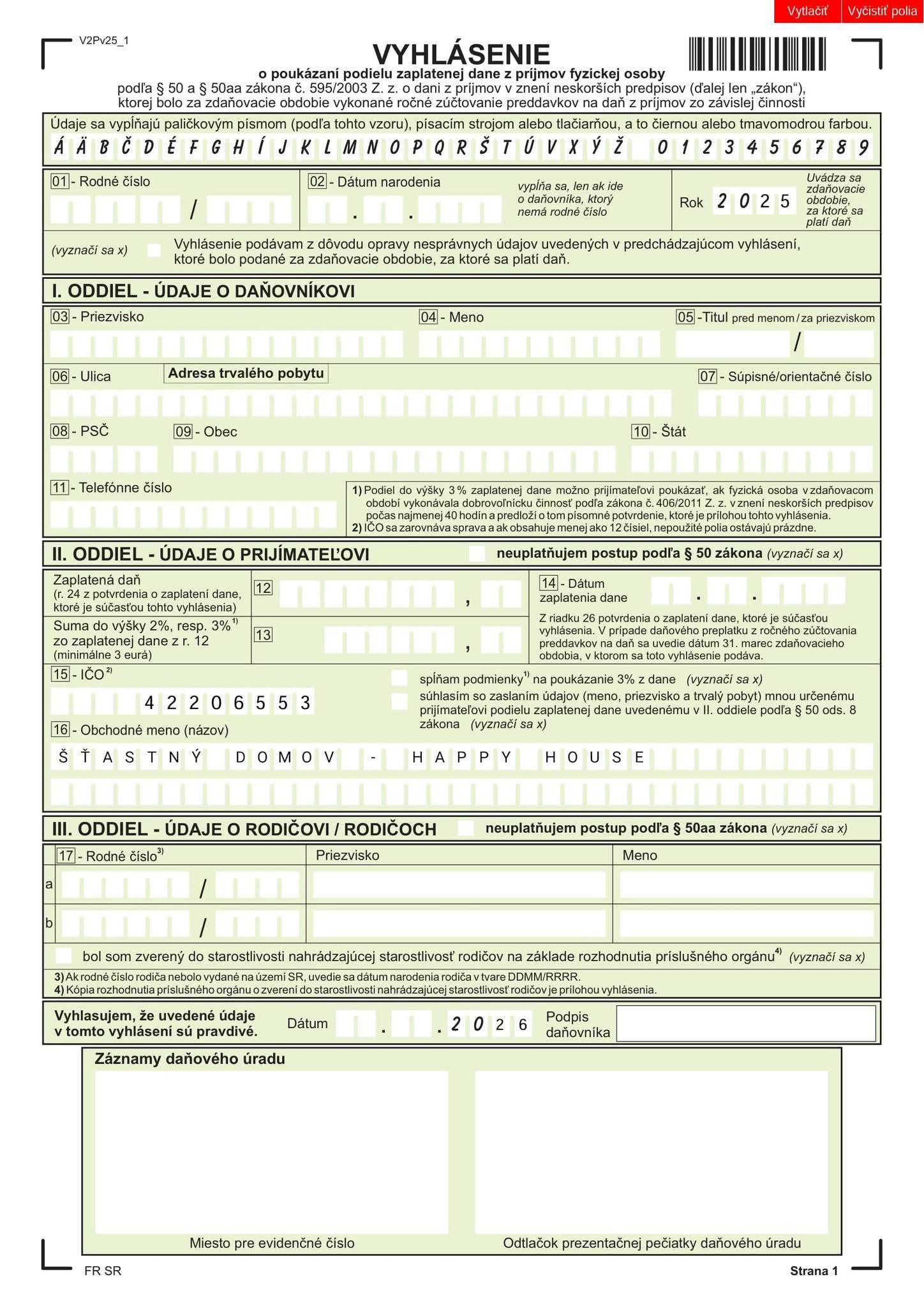 Editovateľné TLAČIVO - VYHLÁSENIE 2% :